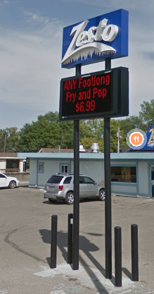The Zesto Drive-in in Watertown, SD from 1953 is still there and the original sign on the roof still has its neon. When the business moved to this location in 1965, they brought the sign with them: