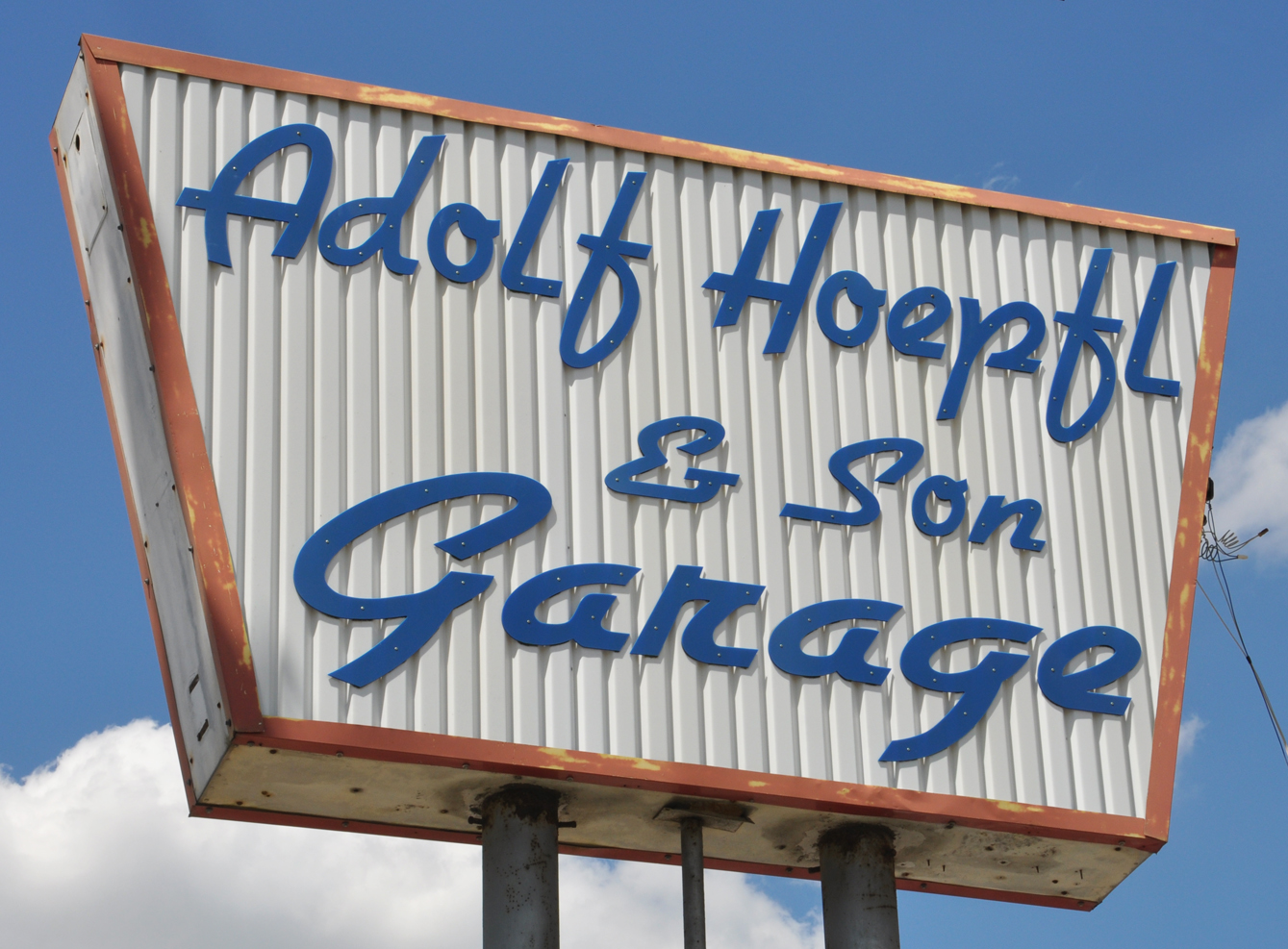 Moving on to Houston. Up until last year, the lettering on the neon sign was “Adolpf Hoepfl”. My photo from 2018 of the 1946-ish projecting sign: