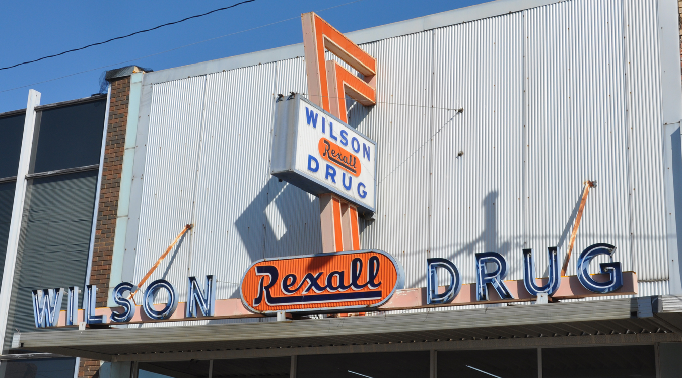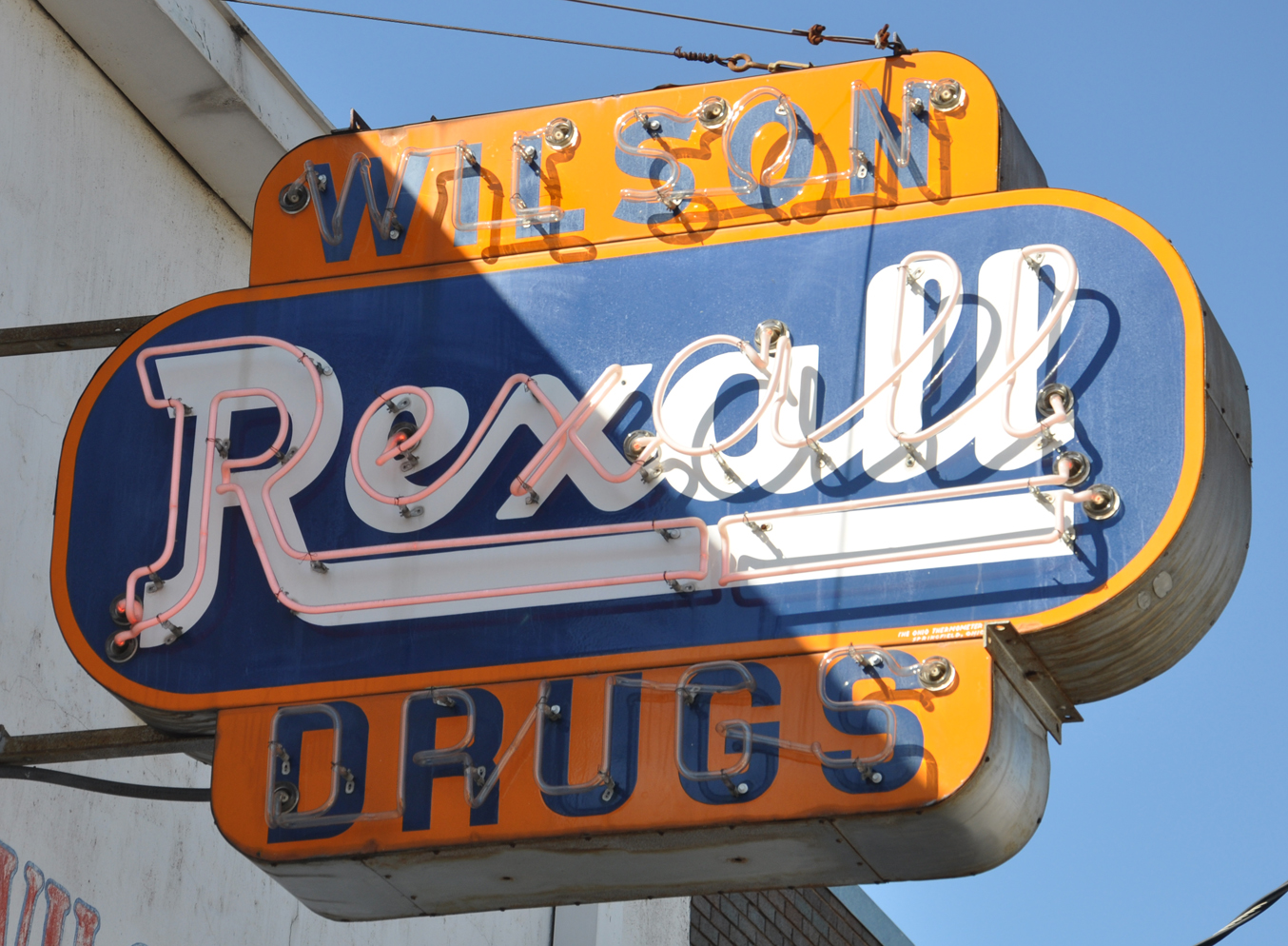 Last stop for this post is in Hearne. This still operating drug store has intact signs, apparently from the 1960s:
