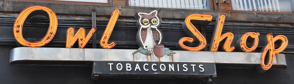 The Owl Shop in Worcester, MA closed in 2022. This sign is gone now. It was supposed to be installed at a new location in New Hampshire in 2023 but that hasn’t happened and there has been no announcement of even what city the store will be in: