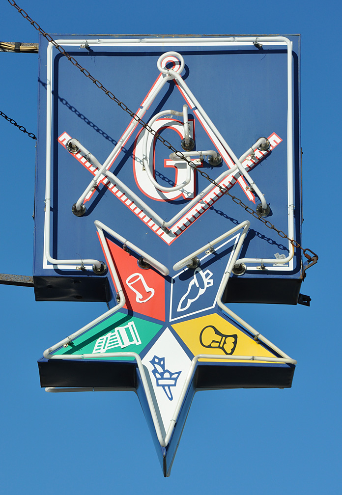 This Masonic Lodge sign in Shoals, IN appears to be gone now: