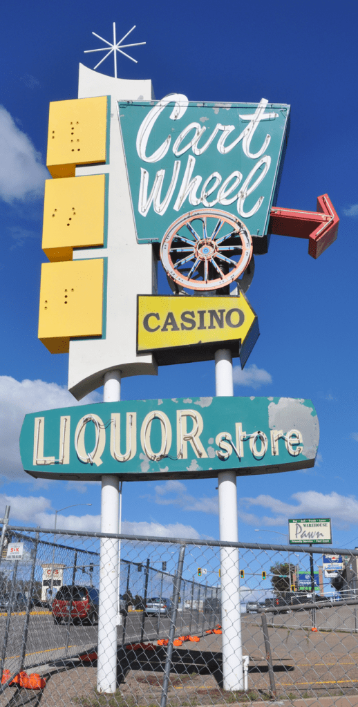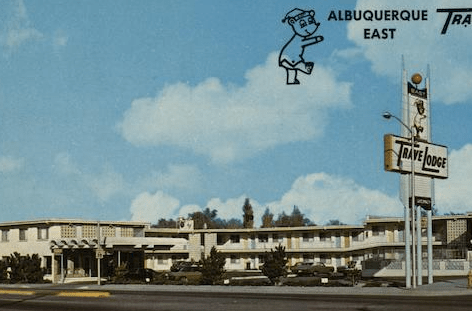 This sign and all of the buildings in Grants, NM are gone – just the three sign poles left: