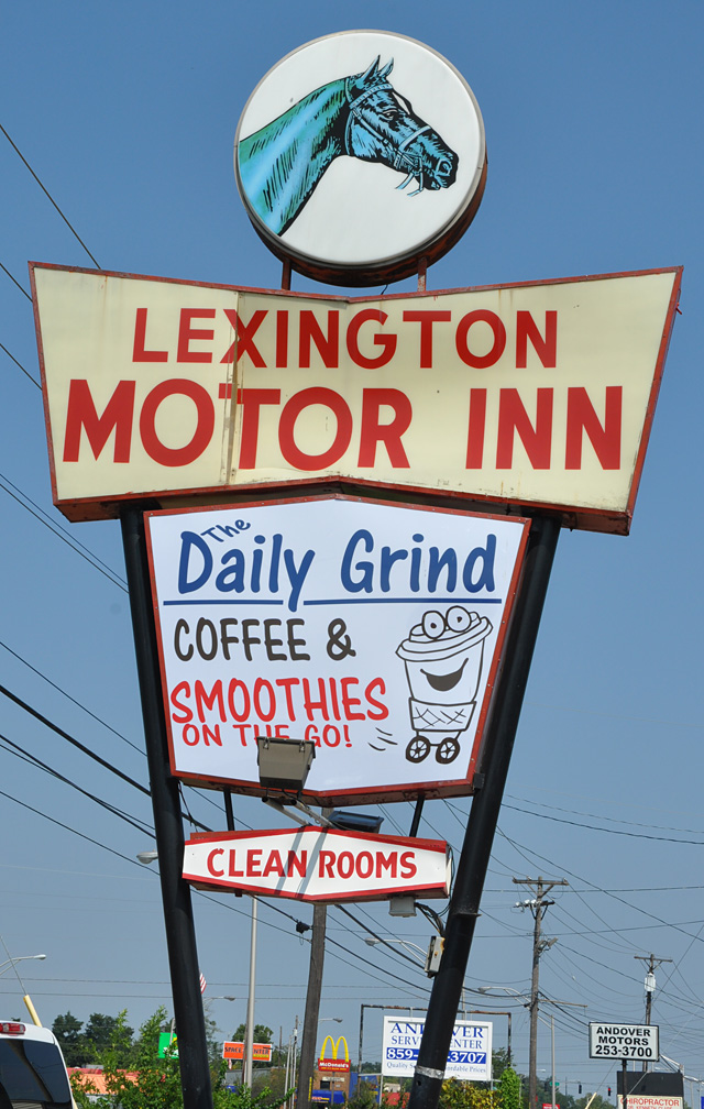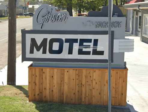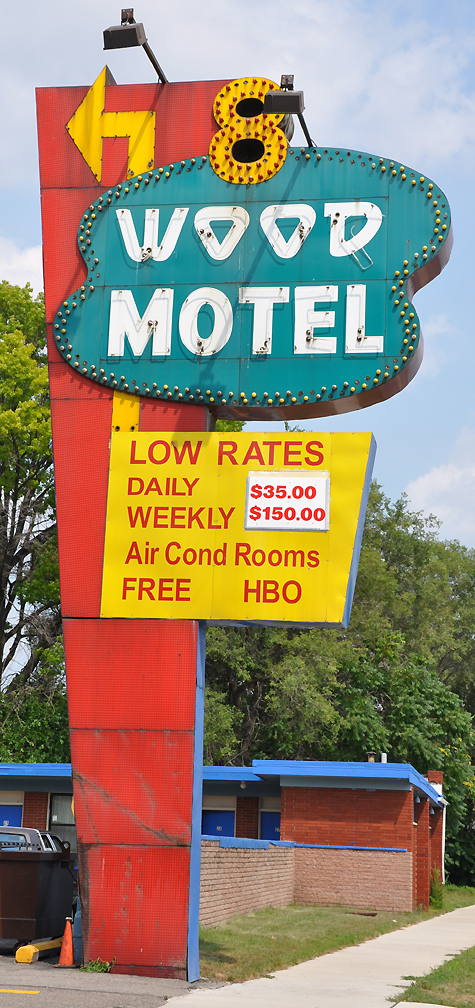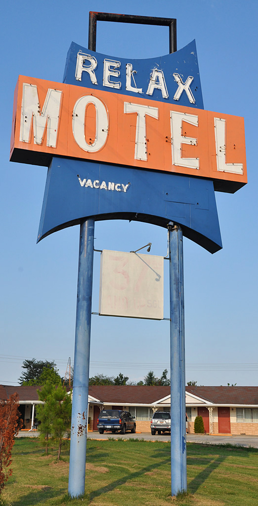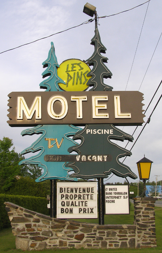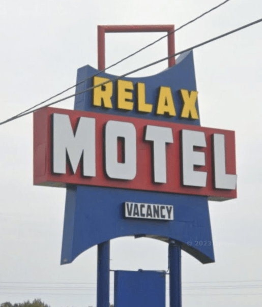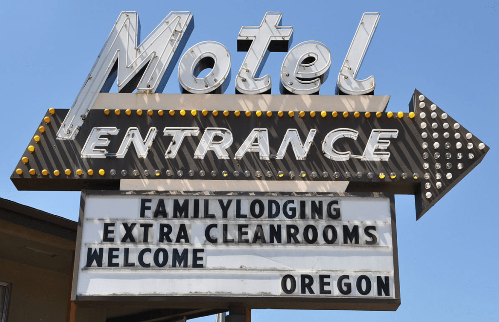 I did find a photo from a news article in October which shows the adapted plastic “MOTEL” sign with the other two signs below gone: