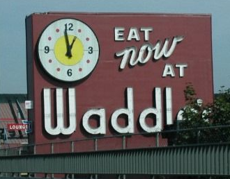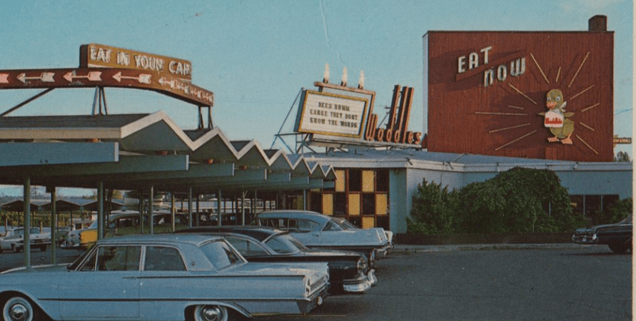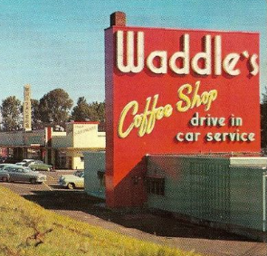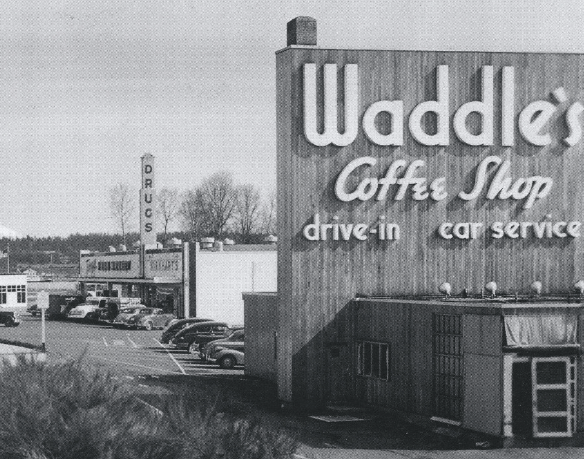 The Waddle’s Coffee Shop sign has been through countless iterations. From the 1950s, before I-5 was built: