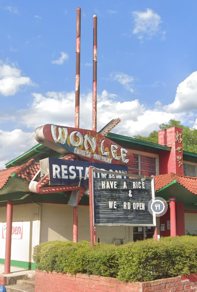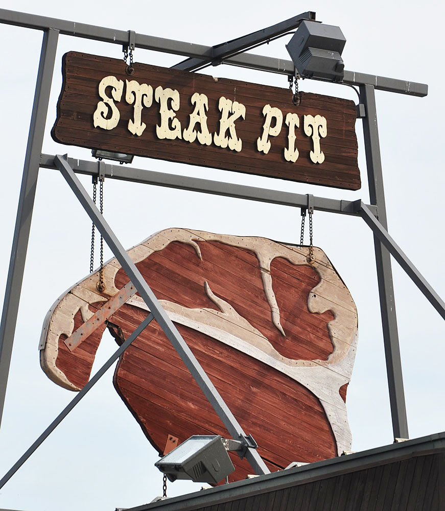 Oh no… this restaurant in Deland, FL closed last year and the sign had slipped about 2/3 the way down on the poles (storm damage?). It also looked bent where the arrow and the Restaurant panel met. I just found a real estate listing from 6 days ago that said the sign had been removed: