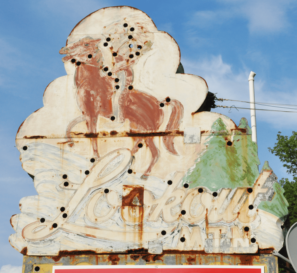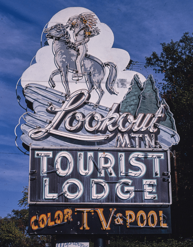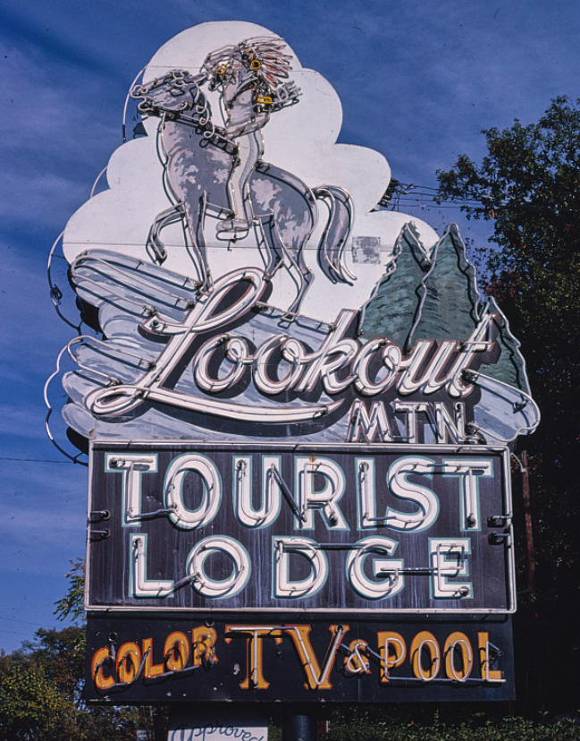 The Lookout Mountain Tourist Lodge in Chattanooga, TN was demolished in June. I don’t know if this sign was saved: