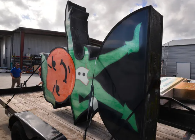 I did find this photo and info at the Florida Today newspaper saying that the sign is now in city storage and might be used in the future at the StorSafe self-storage business that is being built on the property: