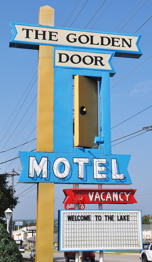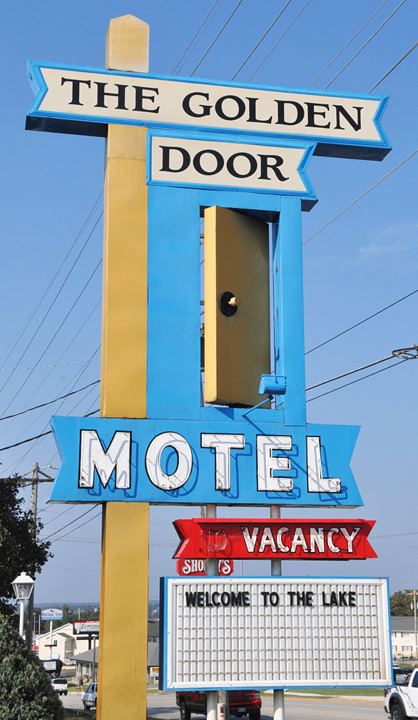 This motel in Osage Beach, MO was demolished in 2017. This sign with the revolving door is gone now: