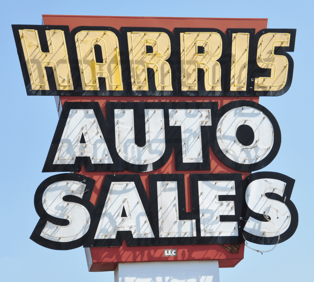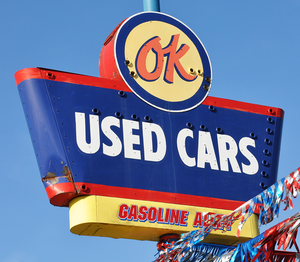 I believe this was originally a Chevrolet OK Used Cars sign like this one: