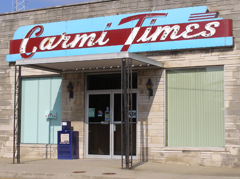 Here are the remaining two states for this winter project: Illinois and Texas. This beautiful sign in Carmi, IL is gone now: