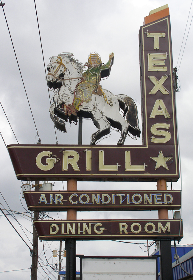This sign in Rosenberg, TX has been through a lot. Back when I shot it in 2006, it was pretty much original: