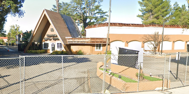 The former Hyatt Lodge in Thousand Oaks, CA is now — you guessed it — surrounded by chain link. It is being redeveloped as homeless housing: