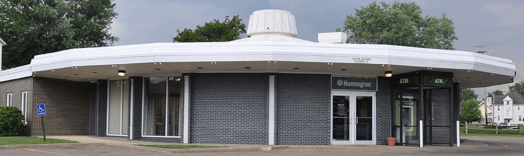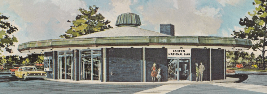 This former “rotunda branch” bank in Canton, OH will likely be demolished soon for a new development known as O’Jay’s Plaza: