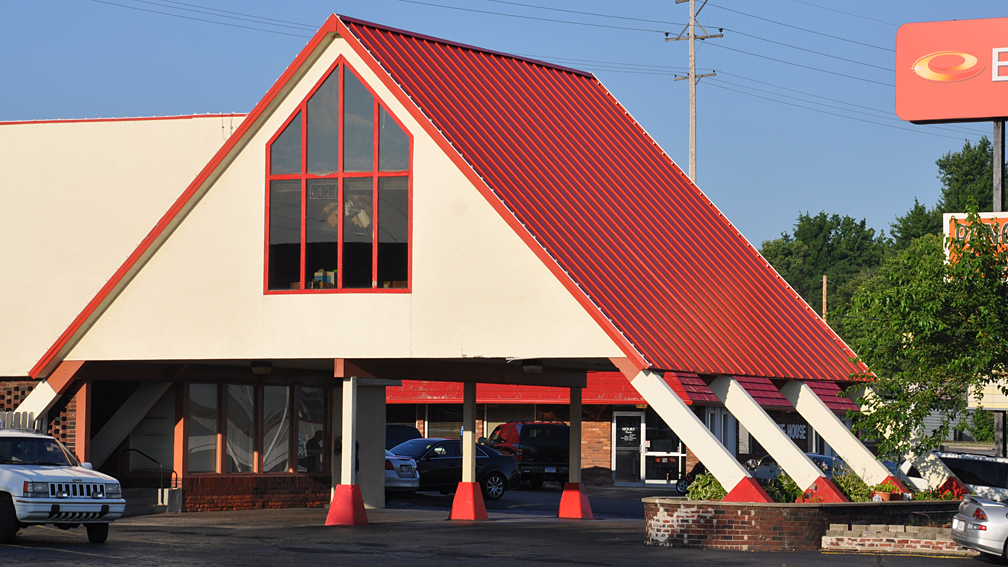 … has been remodeled into boring flat roofline. It looks like the sign tower and a little canopy on the side will be preserved. From June StreetView: