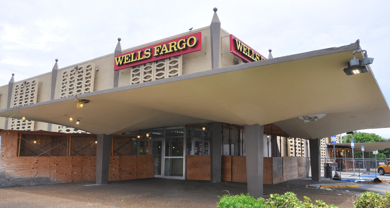 The mid-century metal slipcover on the Coleman County State Bank in Coleman, TX..: