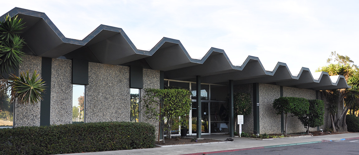 This funky sign in Costa Mesa, CA (and the carwash with concrete pillars and lanterns):