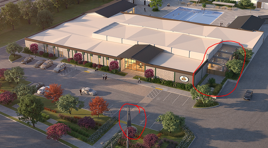 This whimsical building in Moses Lake, WA has been remodeled into a boring box:
