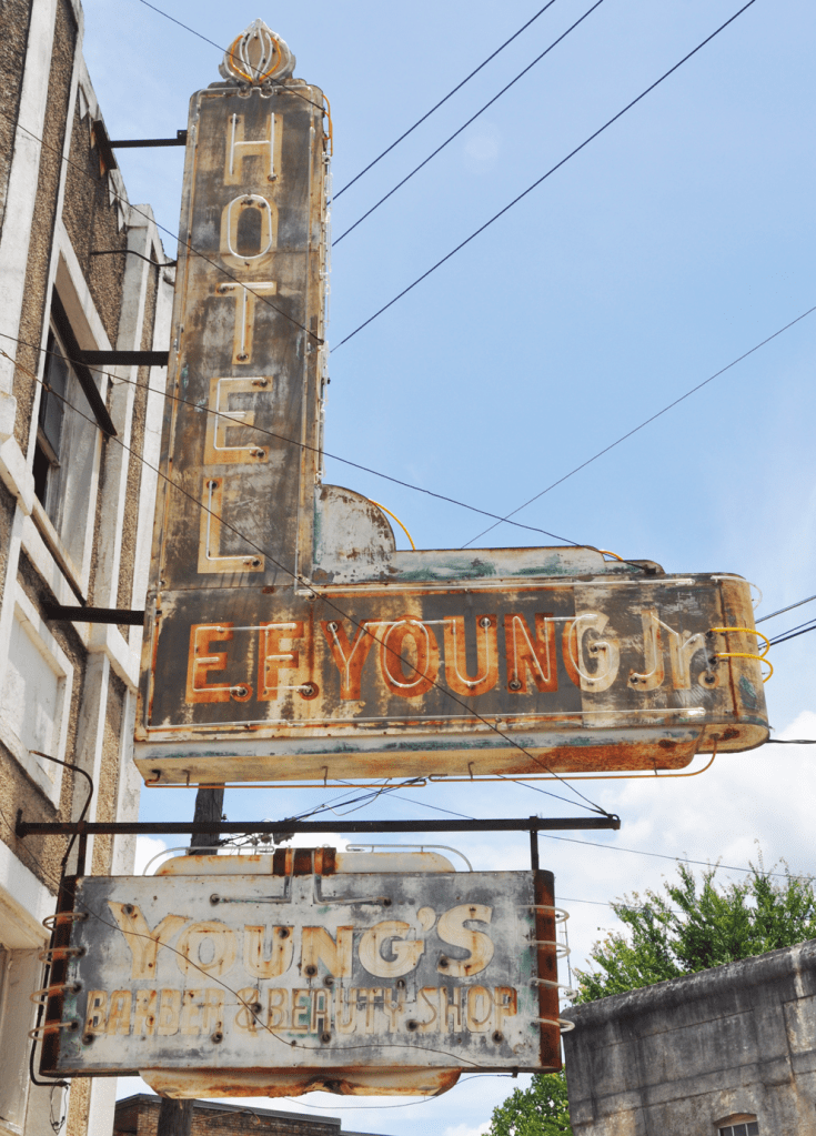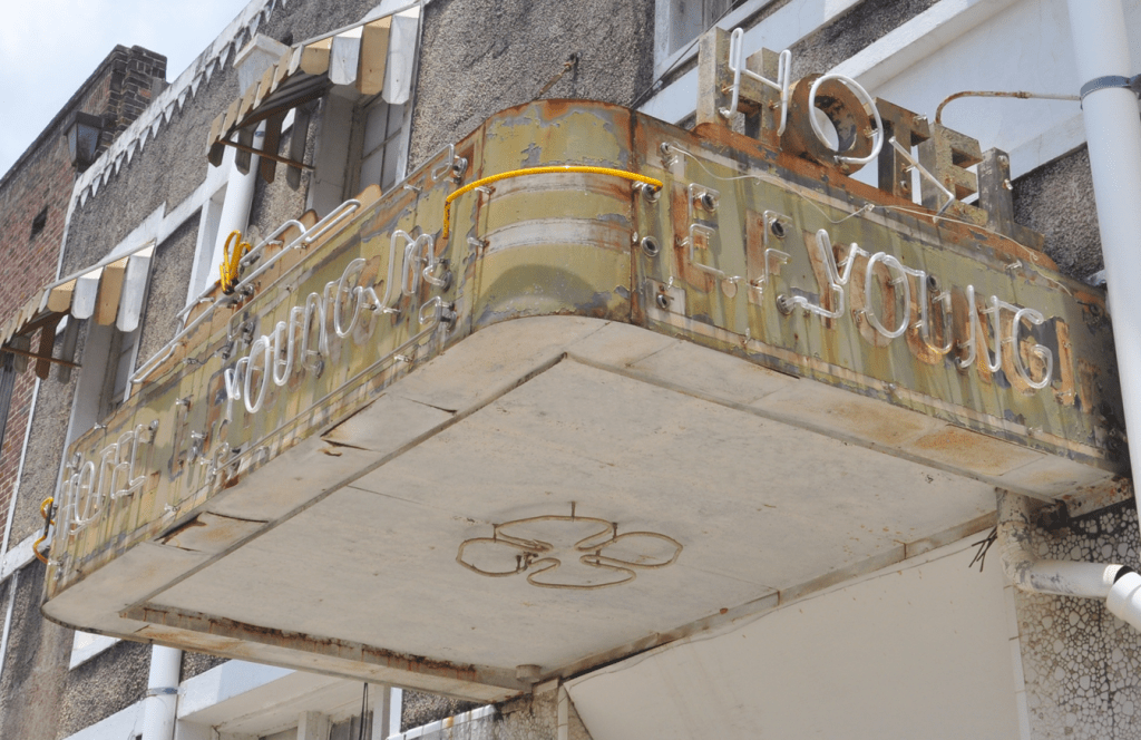 The Hotel E.F. Young Jr. in Meridian, MS has been demolished. This sign is gone but it might have been saved: