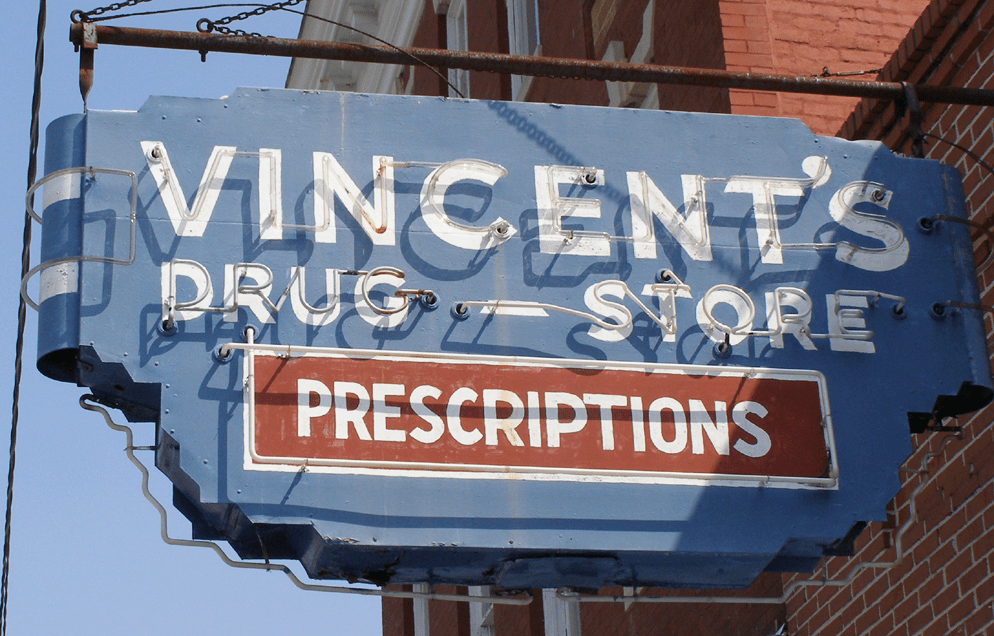 This sign in Crescent, OK is gone now. A new drug store moved in around 2022 and I bet this rough but beautiful sign was chucked: