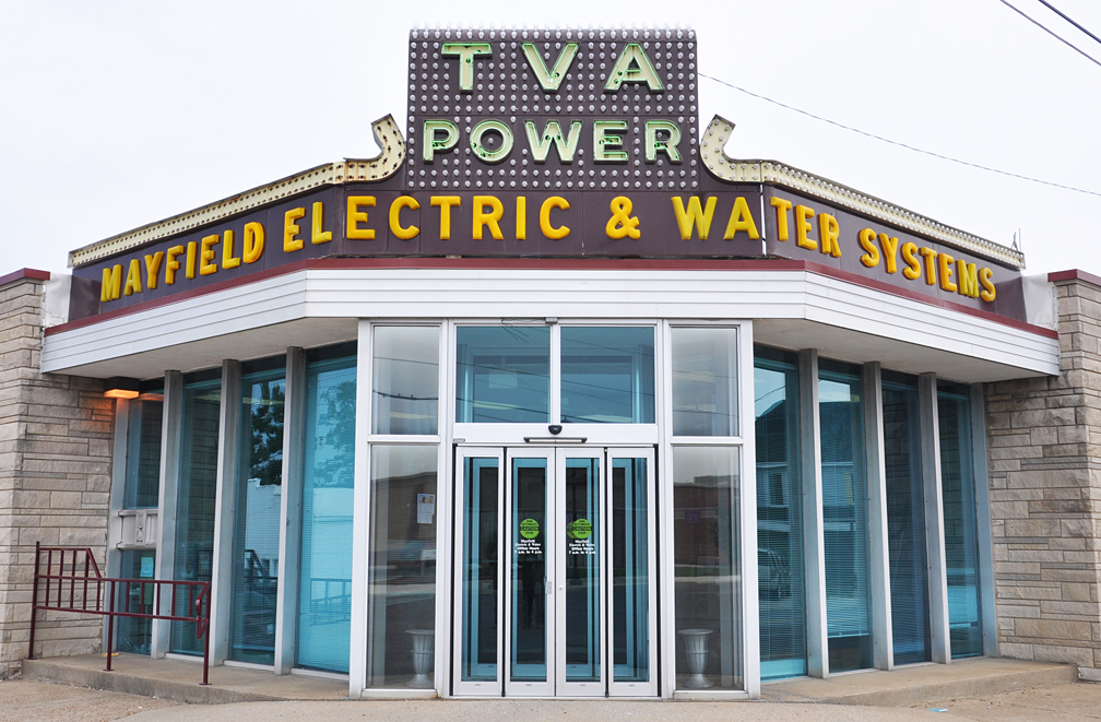 This building and sign (and much of the city of Mayfield, KY) were destroyed to a tornado. It’s still shocking to see all the empty lots at StreetView. Here’s one of my photos from before that: