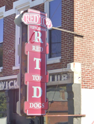 The remains of the Flag Pole Liquor sign in Akron, OH are gone now. Here’s my photo from 2011. I suspect that it was a Norge Village Cleaners “Norge Ball” originally and then painted to look like a burger.