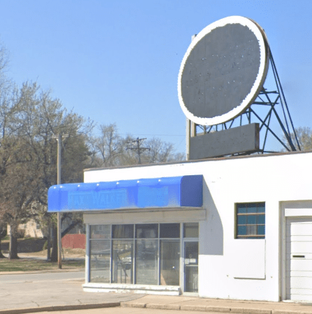 This sign in McAlester, OK is blank on one side now and the other side is missing the word “Sales”: