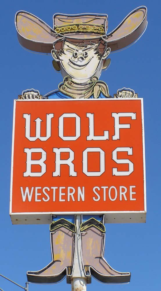 After some digging, I found the top part of the sign installed inside the event venue, The Hitch, at Wolf’s original location. I don’t know if they kept the legs. The neon does not appear to have been restored: