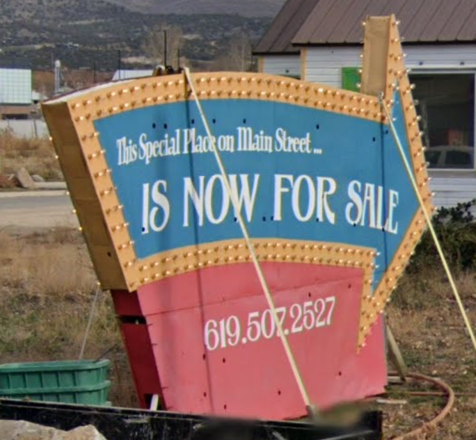 It apparently sat in sign shop storage in Cedar City for a while (StreetView 2015):