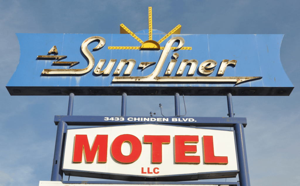 This sign in Great Falls, MT is gone now. The motel was demolished in 2022 and there’s now a Chipotle on the property.